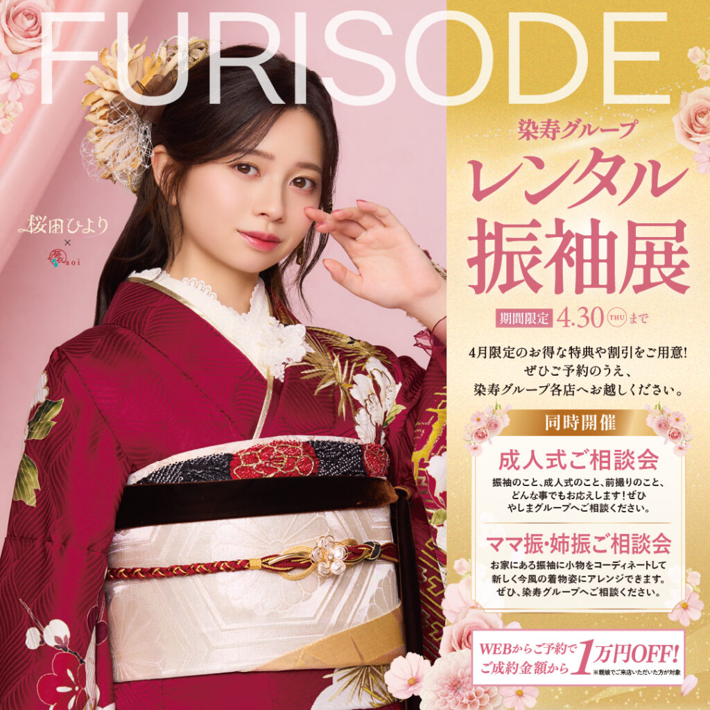 染寿グループでは、成人式を迎える皆様のために、美しい振袖のレンタル・販売サービスを提供しております。伝統的なデザインからモダンなスタイルまで、多彩なコレクションをご用意し、一生に一度の特別な日を華やかに彩ります。