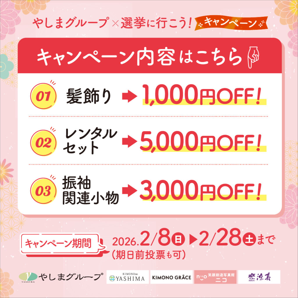 染寿グループでは若い方にももっと選挙に関心をもっていただくために『選挙割』と題し、選挙で投票した方にはお得なサービスを提供しております。