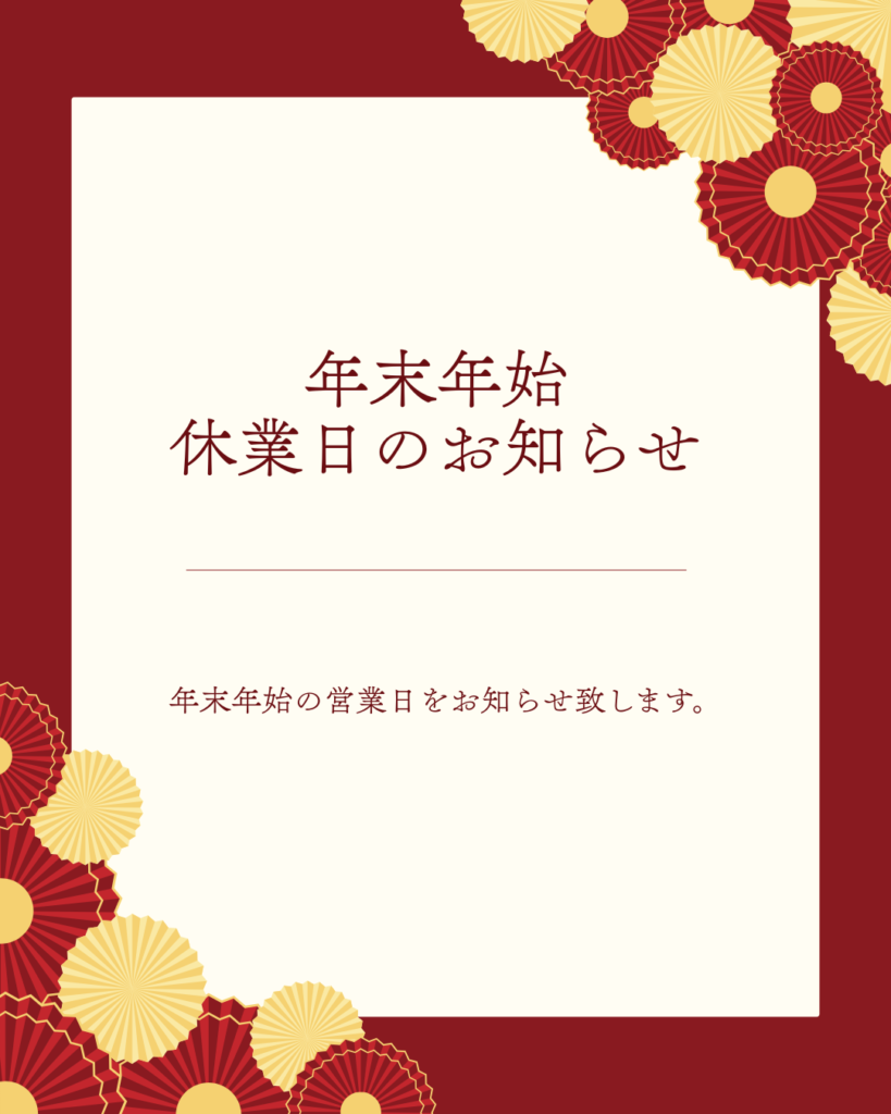 平素より染寿グループをご愛顧いただきまして、誠にありがとうございます。年末年始の営業日をお知らせいたします。 皆様にはご迷惑をお掛けしますが、何卒宜しくお願い致します。